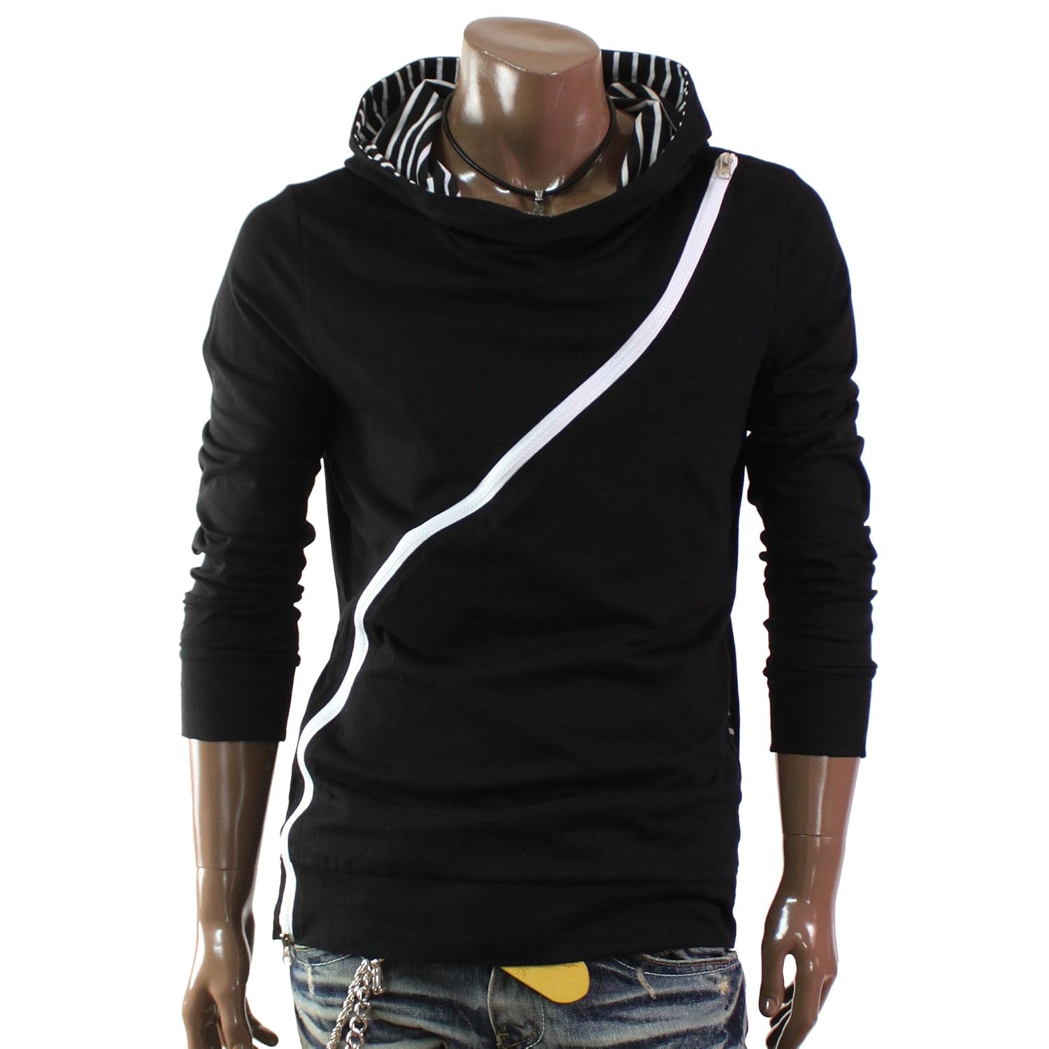 Doublju Mens Casual Unbalanced Zip-Up Hoodie